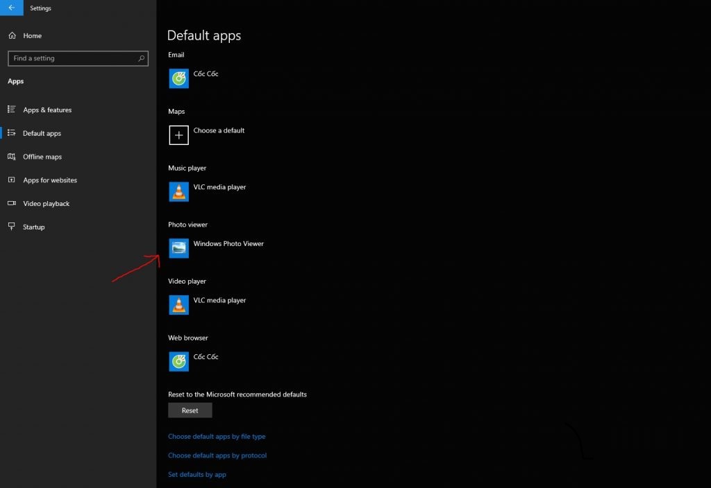 Bạn vào Setting trong Windows 10 > Apps > Default app