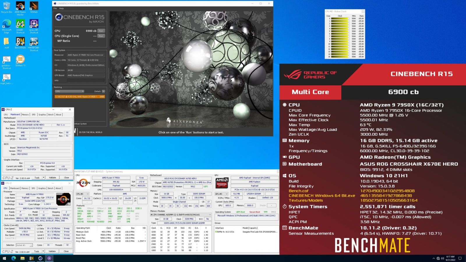 • 5,50 GHz—ASUS ROG Crosshair X670E Hero—16GB G.SKILL DDR5