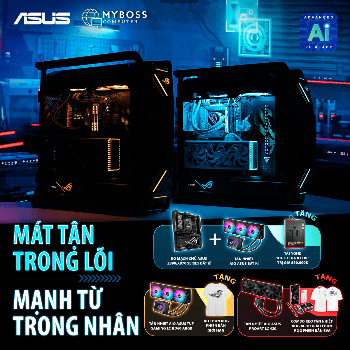 MYBOSS phối hợp cùng ASUS hân hạnh gửi tới quý khách chương trình khuyến mại “MÁT TẬN TRONG LÕI – MẠNH TỪ TRONG NHÂN”. Nhận ngay quà tặng khi mua tản nhiệt nước AIO ASUS !!!