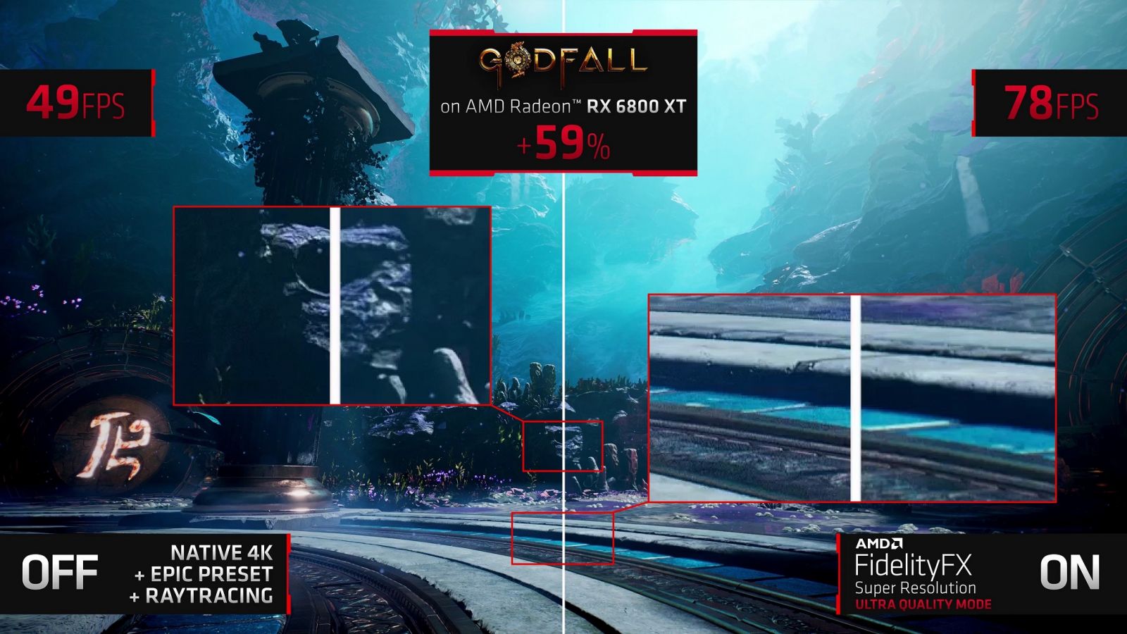 Tương tự như NVIDIA DLSS, AMD FSR cũng cho phép game dựng hình ở độ phân giải thấp rồi sau đó upscale cùng các thuật toán hỗ trợ (như AA - anti-aliasing) để giúp hình ảnh trở nên mượt mà, tương đương với hình ảnh được dựng ở độ phân giải gốc (native). Công nghệ nâng cấp độ phân giải mà cả 2 nhà sản xuất GPU sử dụng đều giúp tăng tốc đáng kể khả năng xử lý game của card đồ họa. Lúc này, GPU chỉ phải dựng hình ở độ phân giải thấp, công việc nhẹ nhàng hơn, bù lại về lý thuyết thì game thủ sẽ phải hi sinh đôi chút về mặt chất lượng hình ảnh. Dĩ nhiên, các điểm yếu này sẽ được giải quyết bằng các thuật toán khác.