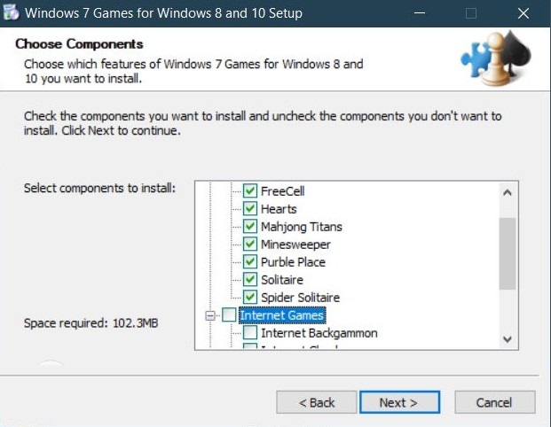 Bước 3: Chọn game mà bạn muốn cài đặt và kéo xuống để bỏ chọn Internet games
