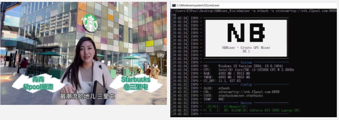 Khai thác GPU trên máy tính xách tay Starbucks, Nguồn: 鱼池 f2pool
