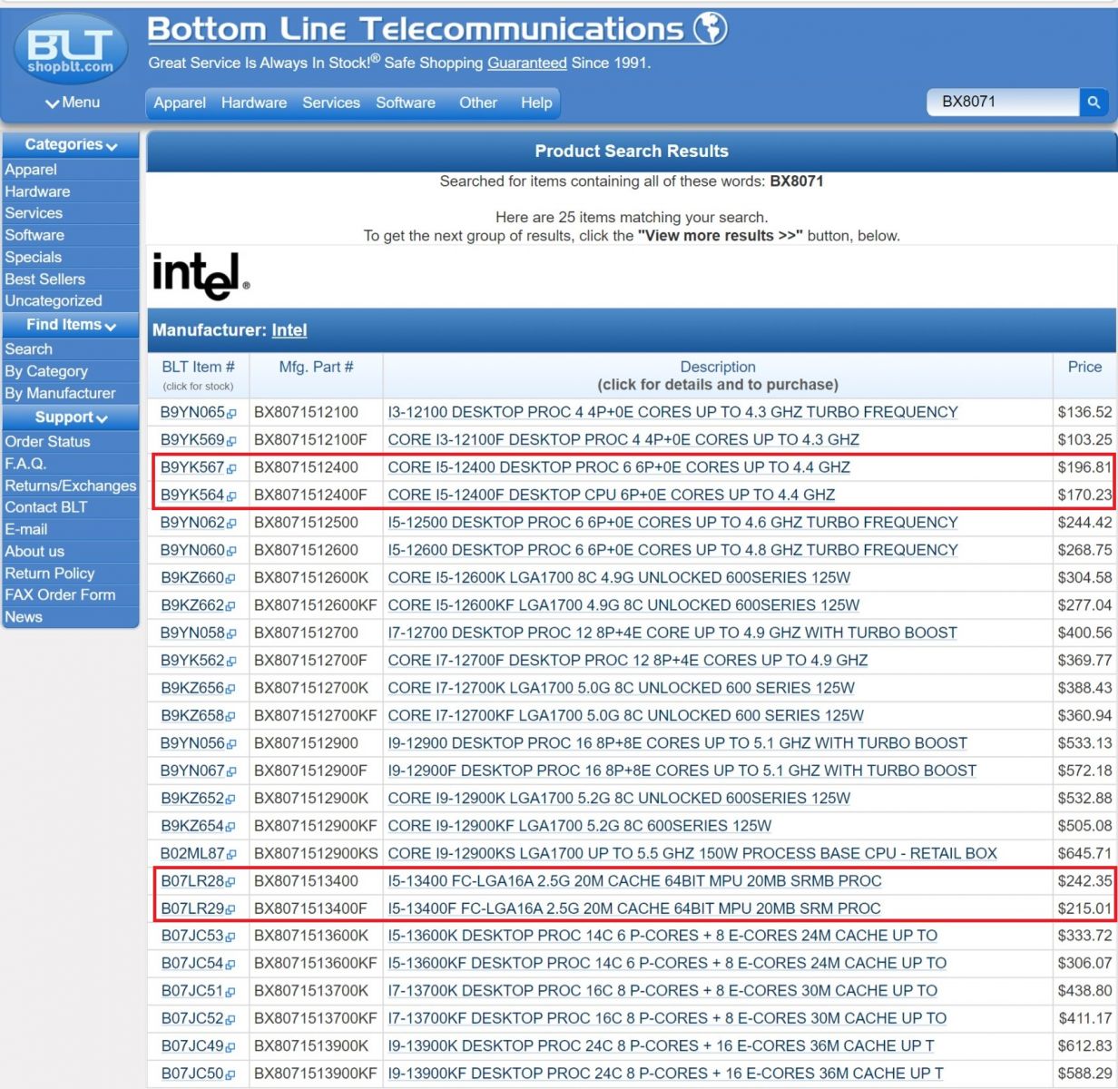 ShopBLT - 1 nhà bán lẻ lớn tại Mỹ - vừa để lộ mức giá của bộ đôi vi xử lý tầm trung sắp ra mắt - Intel Core i5-13400 và Core i5-13400F. Khi so sánh với giá của thế hệ Alder Lake-S tương ứng, anh em cần phải chi nhiều tiền hơn cho Raptor Lake-S, cụ thể là 24% và 27%.