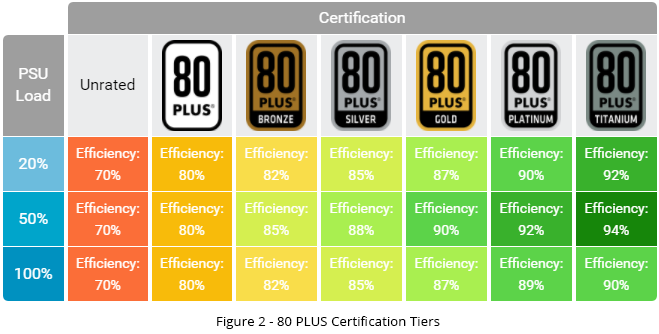 Có 6 mức 80 PLUS cho các PSU: