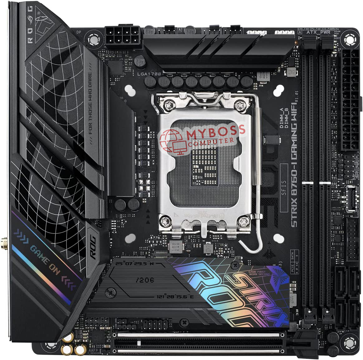 Ngoài ra, ASUS cũng cung cấp thêm bo mạch chủ Mini-ITX Intel B760 mang tên ROG STRIX B760-I Gaming WIFI và thiết kế VRM 10 – 12 pha với đầu nối nguồn 8 pin. Bo mạch chủ sở hữu một khe cắm PCIe 5.0 x 16 và một khe cắm M.2 duy nhất. Ngoài ra, sản phẩm cũng mang trên mình phong cách đậm chất gaming và cung cấp 4 cổng cắm SATA III.