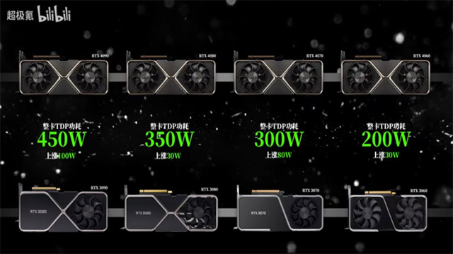 Hình ảnh rò rỉ tiếp theo cho thấy tổng công suất đồ họa (TGP) dự kiến của các mẫu card đồ họa Ada Lovelace. Trong đó,mức tiêu thụ điện năng dự kiến của RTX 4090, 4080, 4070 và 4060 lần lượt là 350W, 300W và 200W.