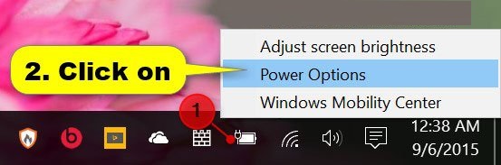 2. Nhấp chuột phải hoặc nhấn và giữ vào biểu tượng Power trong khu vực thông báo, nhấn vào Power Options và đi đến bước 5 bên dưới.