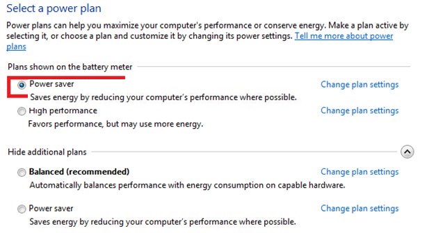- Power saver (Tiết kiệm năng lượng) - Tùy chọn này tiết kiệm năng lượng bằng cách giảm hiệu suất PC và độ sáng màn hình. Nếu bạn đang sử dụng laptop, power plan này có thể giúp bạn tận dụng tối đa chỉ với một lần sạc pin.