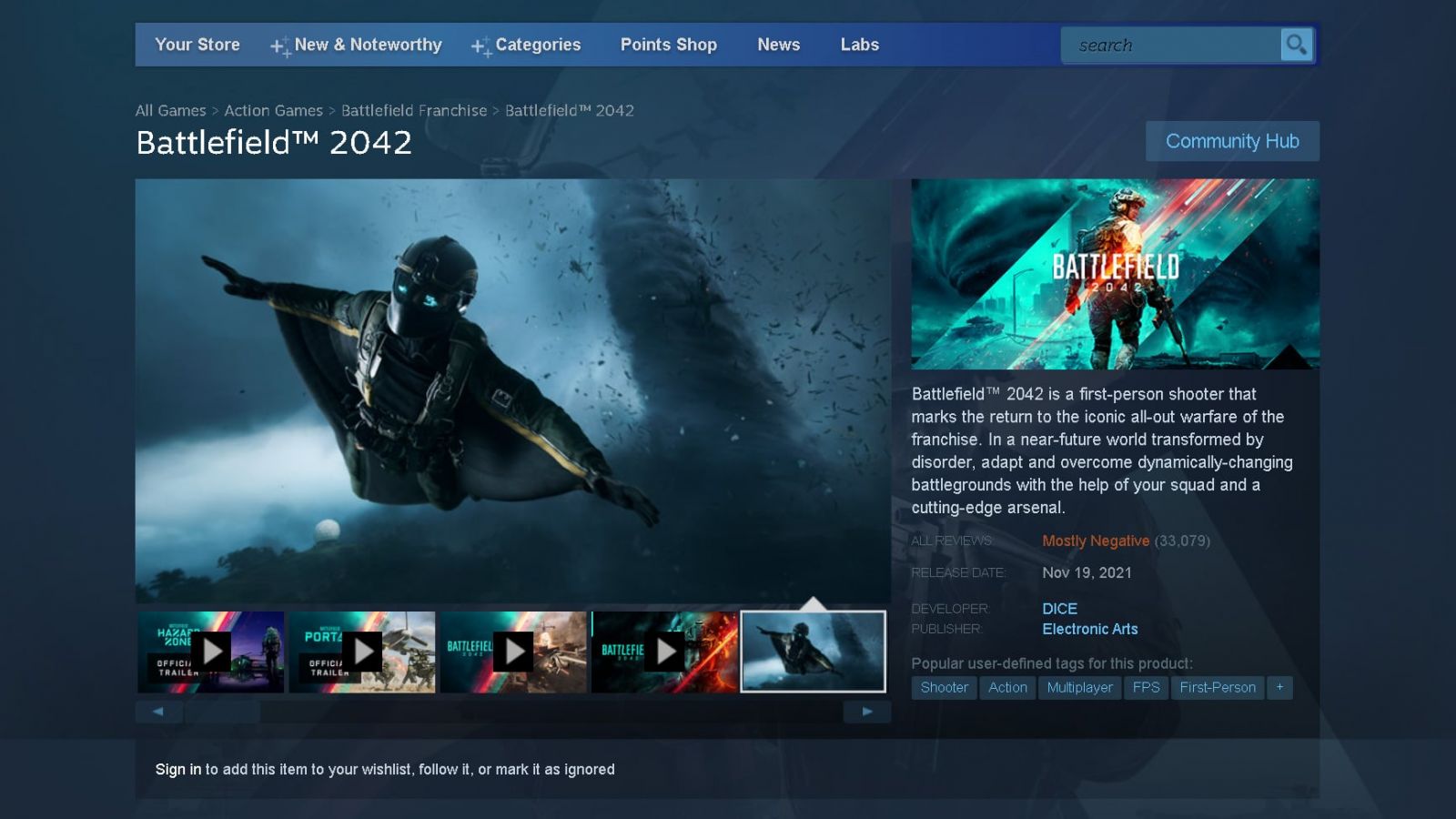 Mới ra mắt được 3 ngày, Battlefield 2042 đã lọt vào top 10 game .... nhất trên Steam!