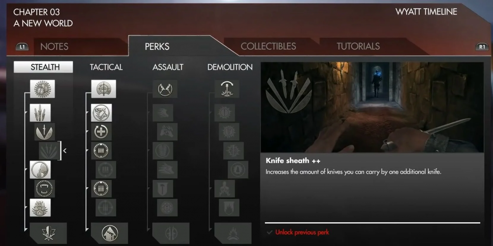 Tất nhiên, truyền thống có thì hiện đại cũng có. Đầu tiên, cơ chế lén lút là một sự lựa chọn hợp lý cho trò chơi, với khả năng hạ gục trong im lặng và một khẩu súng lục có sức sát thương khủng khiếp. Bên cạnh đó là hệ thống perk mà người chơi có thể phát triển xuyên suốt quá trình chơi. Thực hiện một số hành động trong chiến đấu mở những khả năng mới và nâng cấp theo thời gian có thể tạo ra sự khác biệt đáng kể trong cách bạn có thể giải quyết trận đấu súng.