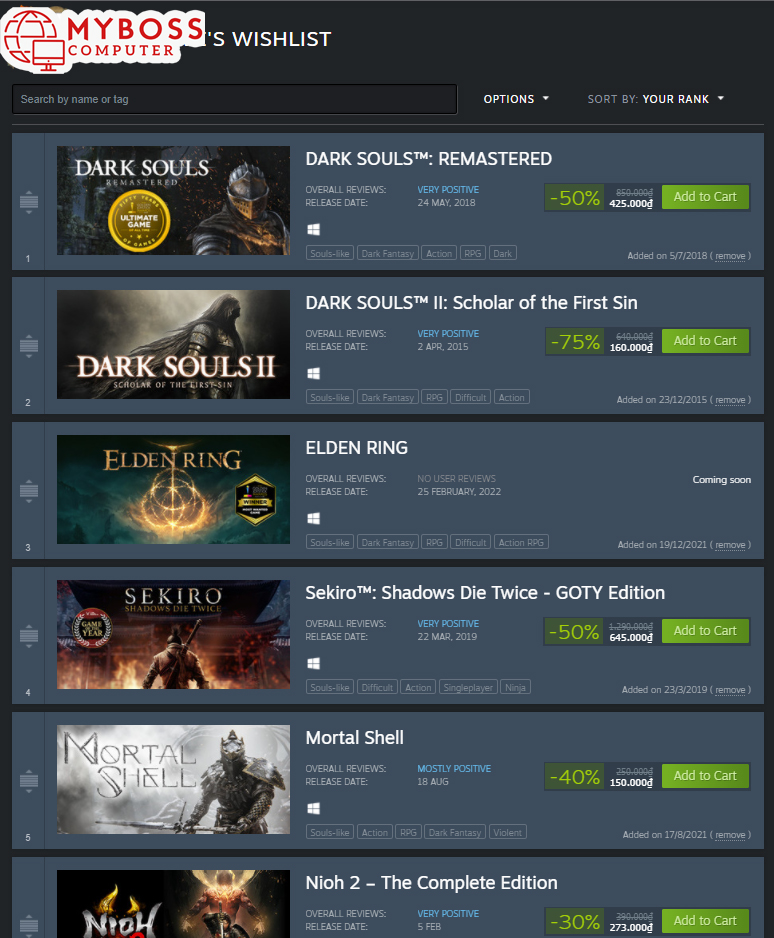 Các bạn có thể xem toàn bộ game giảm giá tại website của Steam hoặc tham khảo một số tựa Game mà MYBOSS "khuyên dùng" mùa sale này để anh em tham khảo nhé!
