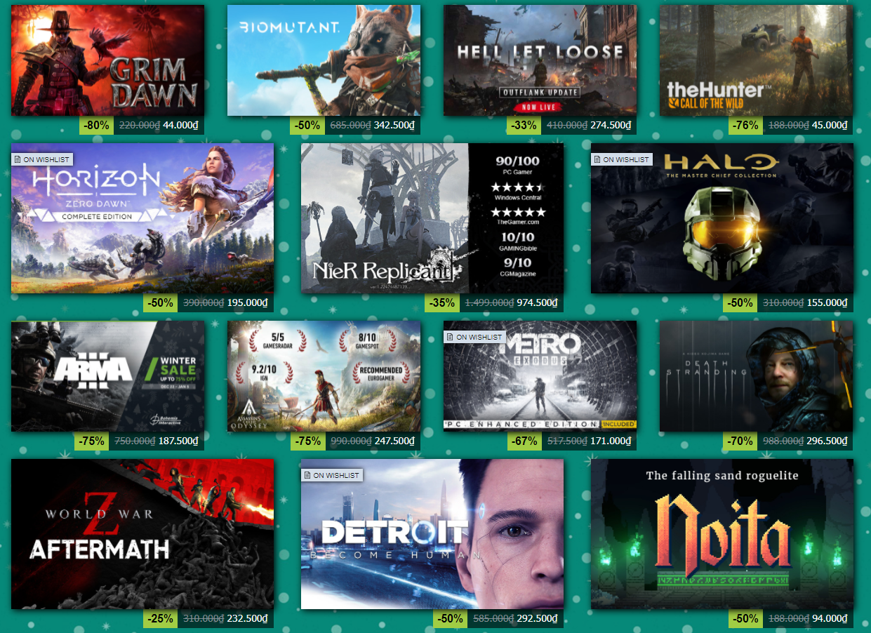 Theo đó, các game trong sự kiện Steam Winter Sale 2021 sẽ đều giảm giá cực mạnh lên tới 60 - 80%, số khác lại giảm thẳng 90%. Cơ hội quá tuyệt vời cho game thủ sở hữu những siêu phẩm với cái giá chỉ bằng một bát phở.