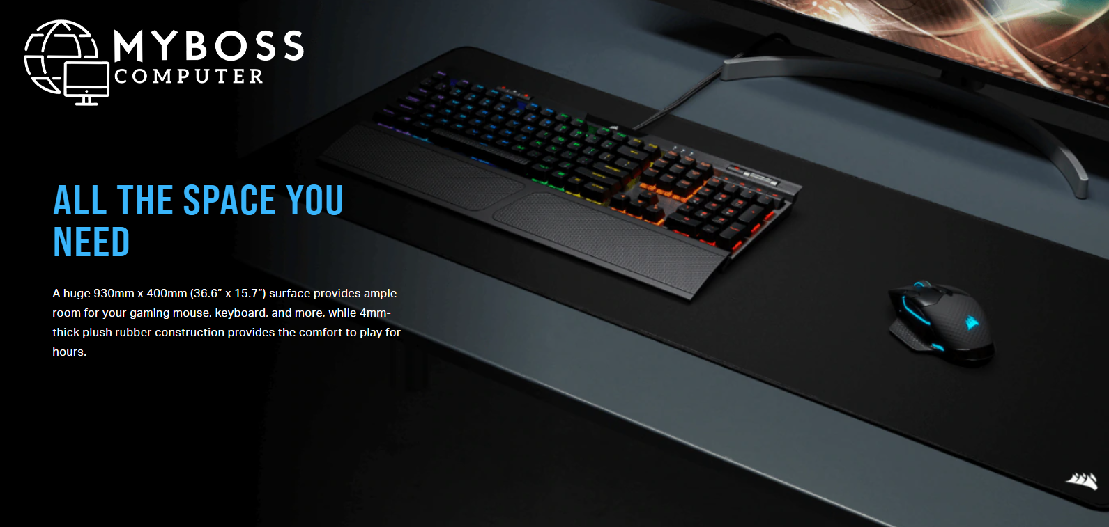 Bề mặt lớn 930mm x 400mm cung cấp không gian rộng rãi cho chuột chơi game, bàn phím, v.v., trong khi kết cấu cao su sang trọng dày 4mm mang lại sự thoải mái khi chơi trong nhiều giờ.