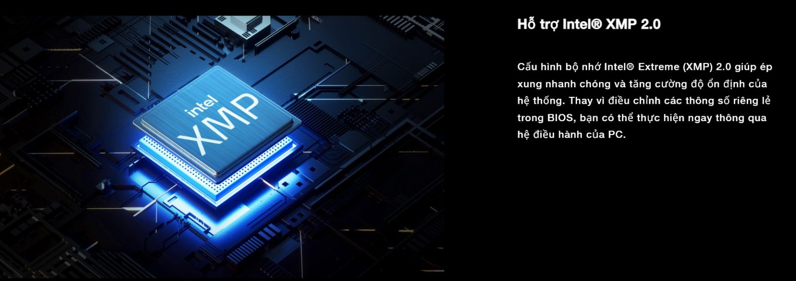 Intel Extreme Memory Profile (XMP) 2.0 giúp ép xung dễ dàng hơn và cải thiện độ ổn định của hệ thống. Thay vì phải điều chỉnh từng thông số riêng lẻ trong BIOS, bạn có thể thực hiện việc này trực tiếp thông qua hệ điều hành của PC chỉ với vài cái click chuột.