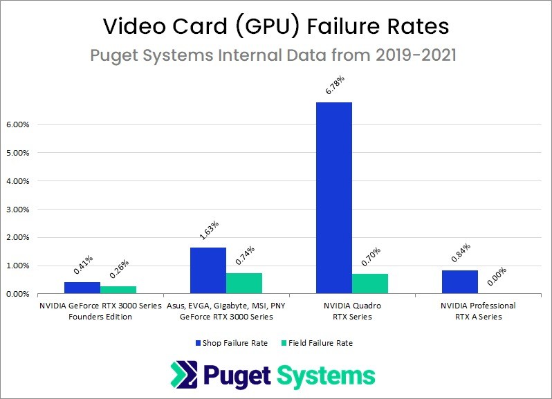 Dưới đây là một số biểu đồ tỷ lệ lỗi của các linh kiện khác mà Puget thống kê: