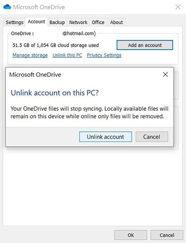 4. Trong phần OneDrive, bấm Unlink this PC.