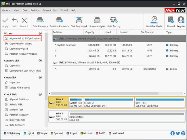 2. Sở hữu một phần mềm nhân bản. Bài viết phần mềm nhân bản SSD tốt nhất cho Windows 10 - MiniTool Partition Wizard. Tải tại đây.