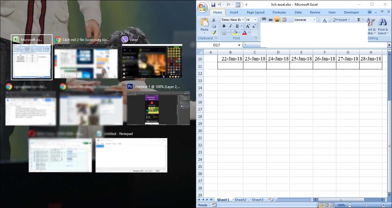 Cách mở 2 file Excel cùng lúc trên màn hình