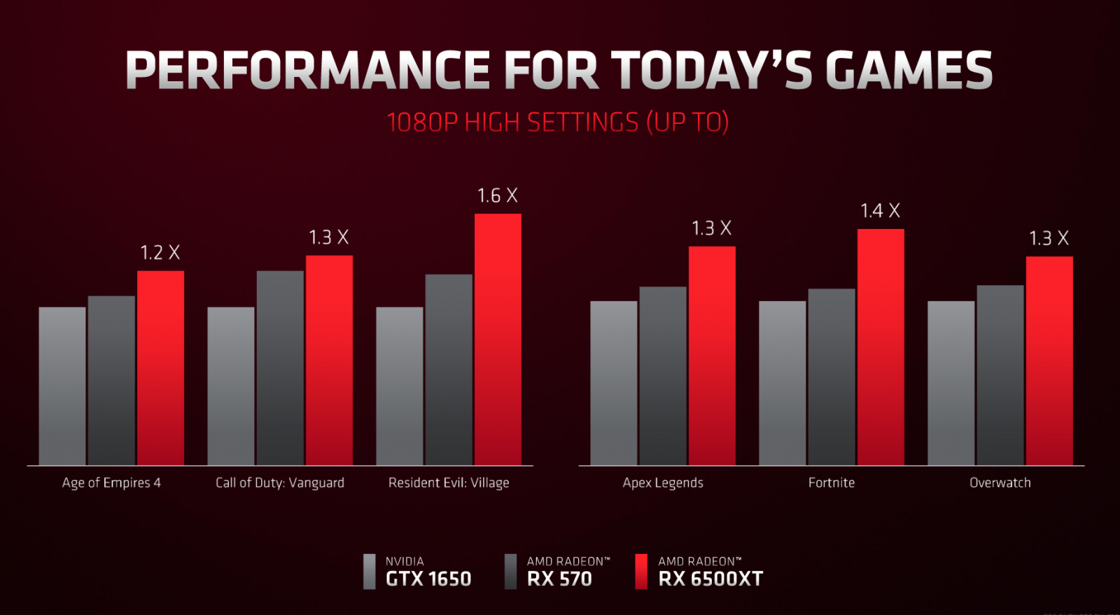 Cụ thể hơn, với một số thử nghiệm ban đầu từ chính AMD, mẫu card đồ hoạ tầm phổ thông thế hệ mới RX 6500 XT cho tốc độ xử lý trung bình ở mức thiết lập High và độ phân giải 1080p với tựa game Resident Evil: Village ở mức 108fps, Halo Infinite ở mức 78fps hay Call of Duty: Vanguard ở mức 61fps.