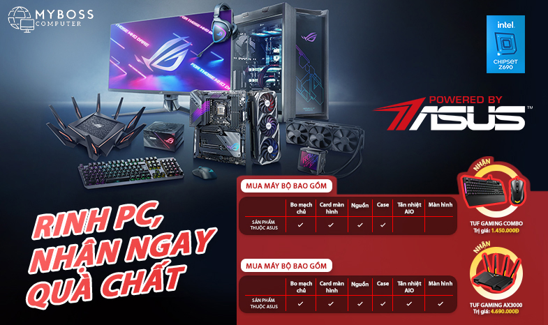 MYBOSS phối hợp cùng ASUS hân hạnh gửi tới quý khách chương trình khuyến mại đặc biệt trị giá tới 4,690,000 VNĐ khi mua PC bao gồm linh kiện của Asus
