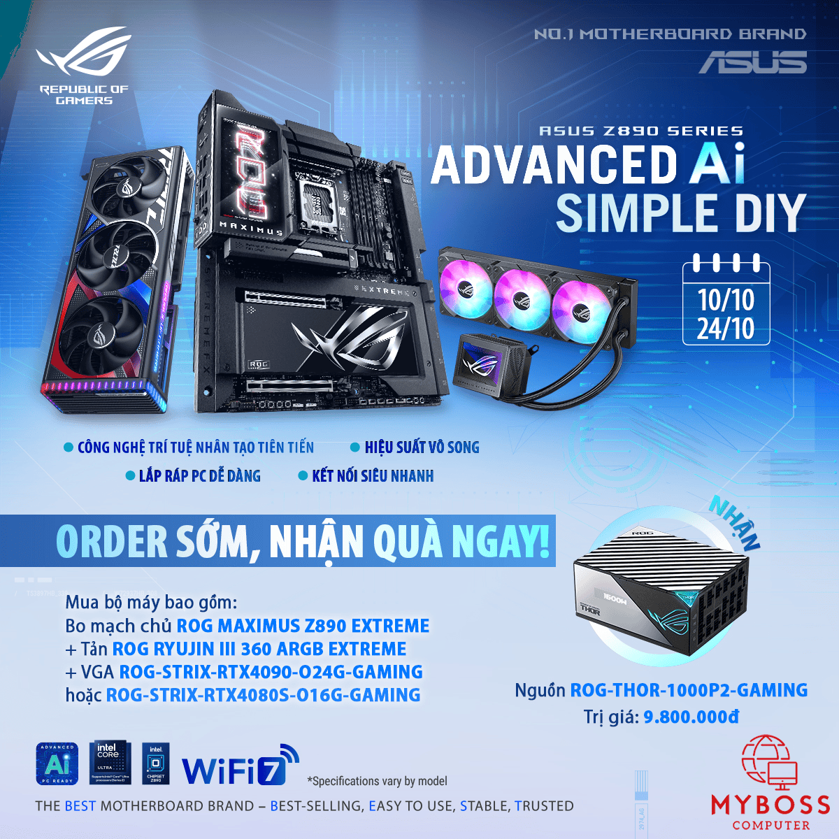 MYBOSS phối hợp cùng ASUS hân hạnh gửi tới quý khách chương trình khuyến mại “ORDER SỚM – NHẬN QUÀ NGAY CÙNG Z890 EXTREME”
