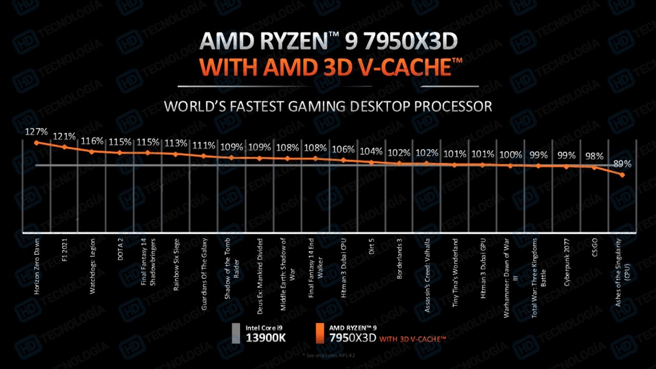 Công nghệ 3D V-Cache lần đầu xuất hiện trên CPU Ryzen 7 5800X3D đã nhanh chóng biến 5800X3D trở thành CPU hàng đầu dành cho các game thủ, nhưng nó bị ảnh hưởng trong một số ứng dụng năng suất do giới hạn 8 nhân và xung nhịp tối đa tương đối thấp ( 4,5 Ghz). AMD đã nhanh chóng nâng cấp công nghệ 3D V-Cache, với tối đa 16 nhân có thể giúp tăng hiệu suất cho các ứng dụng đồng thời cho phép xunh nhịp tăng cao hơn nhiều so với 4,5 GHz của thế hệ trước.