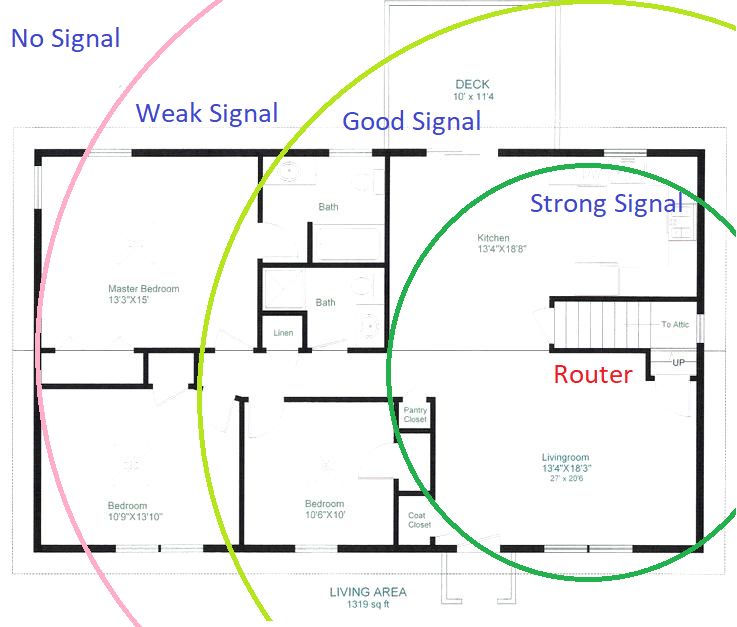 Các đồ điện tử sẽ sinh ra 1 trường điện tử xung quanh nó và gây cản trở cho sóng WiFi nếu như chúng ta để Bộ phát WiFi ở gần nhau. Sóng WiFi sẽ không thể truyền đi xa hơn tới những máy tính khác trong ngôi nhà, hay thậm chí trong phòng nếu chúng ta để qua nhiều thiết bị điện tử cạnh router WiFi. Góc nào càng xa thì càng khó nhận được tín hiệu WiFi. Ngoài ra những loa Bluetooth cũng sẽ gây nhiễu sóng do thường dùng chung một tầng số.