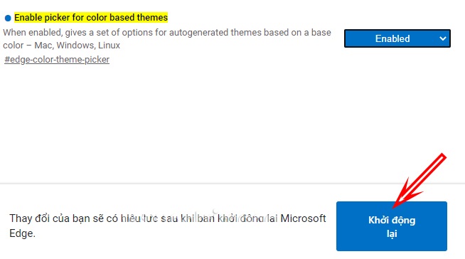 Sau đó bạn chuyển từ chế độ Default sang Enabled để kích hoạt flag này. Tiếp đến chúng ta nhấn Khởi động lại để khởi động lại trình duyệt và áp dụng thay đổi.