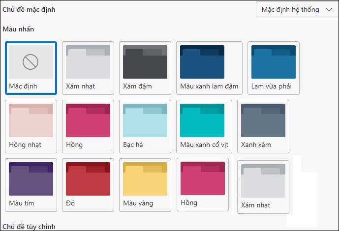 Trong giao diện này bạn sẽ nhìn thấy 14 theme mới cho trình duyệt là những màu đơn sắc khác nhau. Bạn nhấn chọn vào màu theme muốn sử dụng cho trình duyệt.