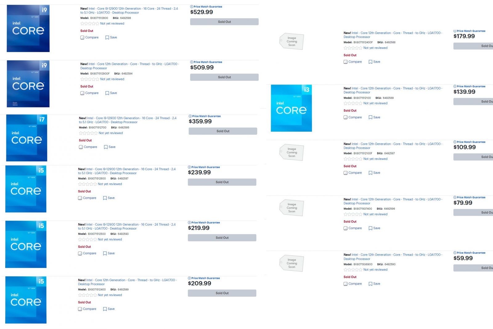 Không dừng lại ở đó, BestBuy cũng công bố thông tin về ba bộ xử lý Intel Core i5, bao gồm 126000, 12500 và 12400. Chúng đều có chung cấu hình 6 lõi hiệu suất nhưng không có lõi tiết kiệm năng lượng. Giá của các CPU này nằm trong khoảng từ 180 USD đến 240 USD, về cơ bản sự chênh lệch giá chủ yếu phụ thuộc vào tần số.