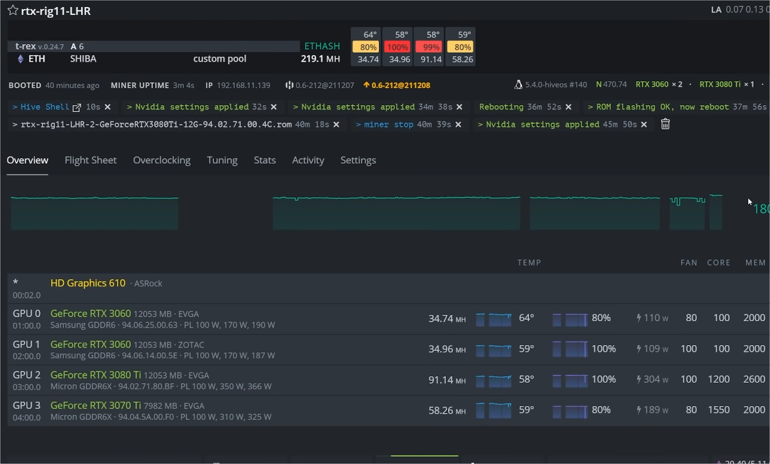 Những ai dùng card EVGA RTX 3080Ti thì có thể nâng cấp firmware thông qua phần mềm EVGA Precision X1 để cải thiện hiệu năng đào coin. @bravo_char cho biết sau khi cập nhật firmware cho mẫu card XC3 của anh ấy thì hash rate đã tăng từ 66MH/s lên thành 80MH/s, tức là tăng đến 21%.