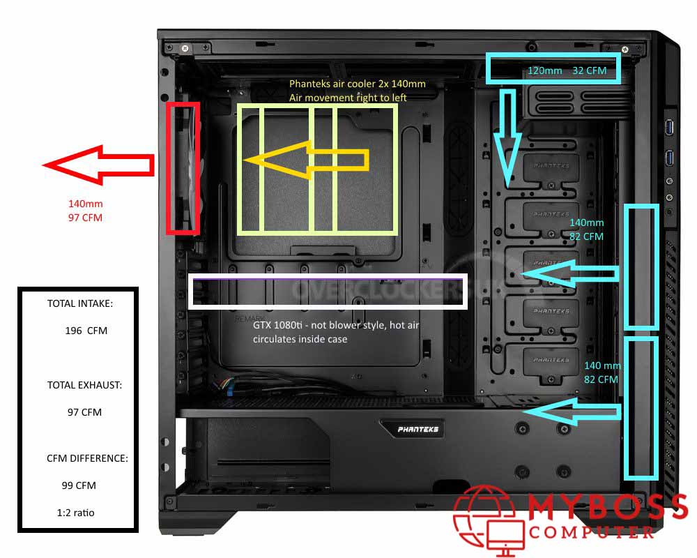 Thứ quyết định đầu tiên chính là vỏ case máy tính. Vỏ case bao phủ toàn bộ vi tính, quyết định luồng gió/khí sẽ đi qua hệ thống bằng việc sử dụng quạt và các phối trí linh kiện. Vỏ case trước khi sản xuất đã được nghiên cứu cực kì kĩ lưỡng với các linh kiện bố trí hợp lí theo các mức giá tiền. Các mức giá tiền cao hơn thường cho thấy vỏ case được nghiên cứu kĩ lưỡng hơn, bố trí linh kiện chất lượng cao hơn và có thể là đẹp hơn nữa.