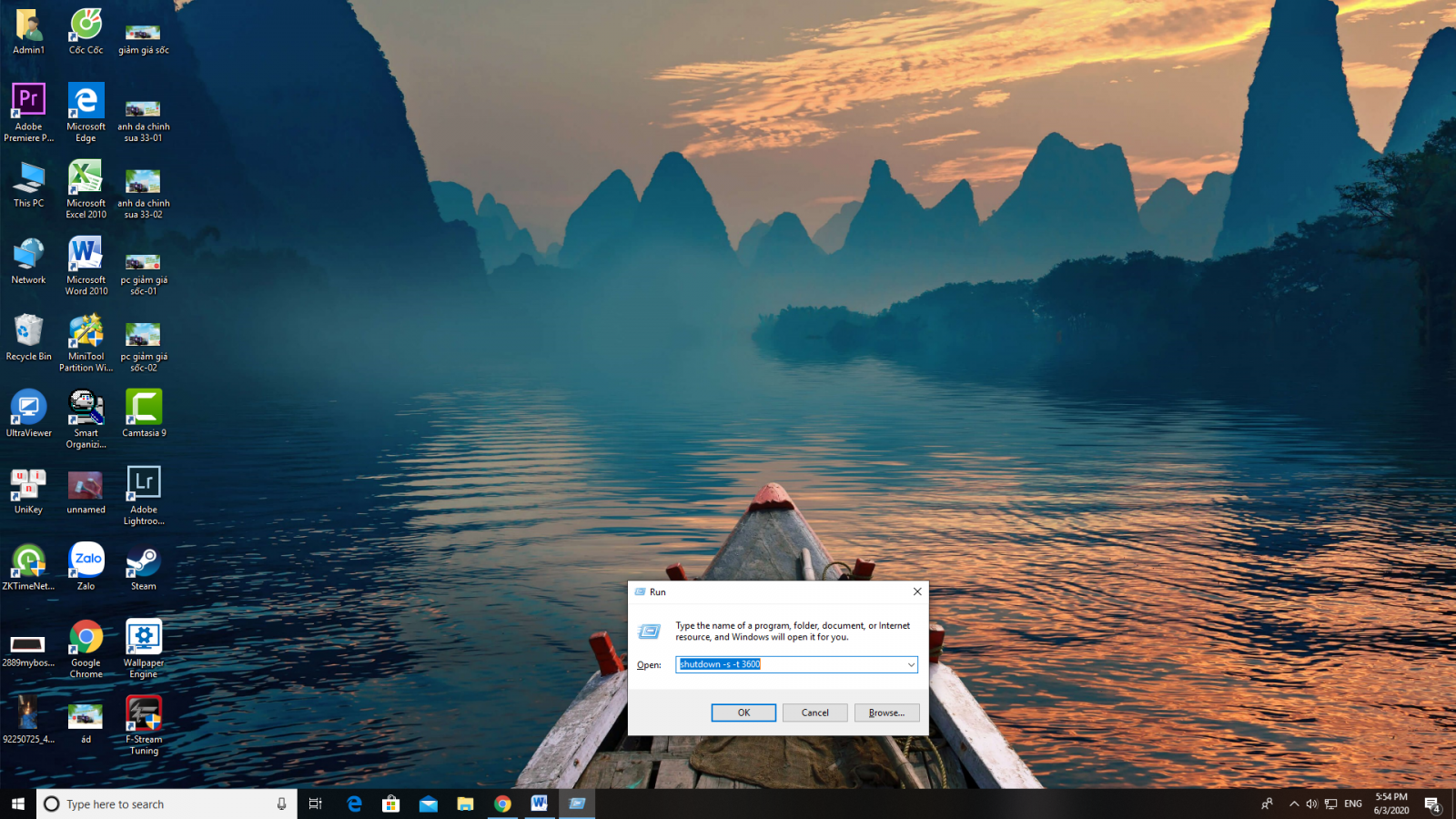 | 5 phút: shutdown -s -t 300 | 30 phút: shutdown -s -t 1800 | 3 tiếng: shutdown -s -t 10800 | 6 tiếng: shutdown -s -t 21600 |