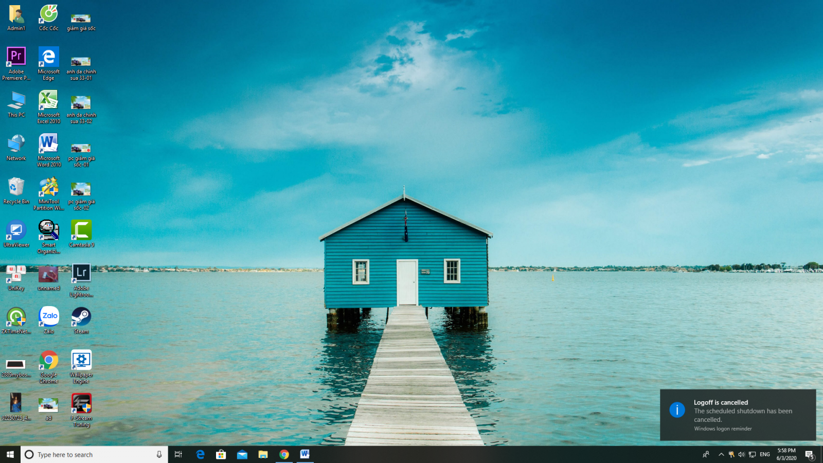 Khi đó sẽ có thông báo lệnh hẹn giờ tắt máy tính đã bị hủy bỏ như hình dưới đây: