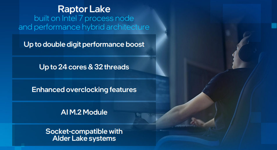 Alder Lake (thế hệ 12) là thế hệ CPU đầu tiên của Intel có kiến trúc lai với nhân tiết kiệm điện và nhân hiệu năng cao. Tiếp bước triết lý thiết kế này, trong cuộc họp nhà đầu tư năm 2022, Intel đã công bố thông tin chi tiết về CPU thế hệ tiếp theo với số nhân tiết kiệm điện còn cao hơn nữa. CPU thế hệ 13 Raptor Lake sẽ có thiết kế nhân hiệu năng cao Raptor Cove với mức IPC dự kiến sẽ tăng cường đáng kể. Sản xuất trên tiến trình Intel 7, CPU thế hệ 13 Raptor Lake hứa hẹn sẽ mang đến các tính năng tương tự như CPU thế hệ 12 Alder Lake nhưng với hiệu năng cao hơn nhiều.