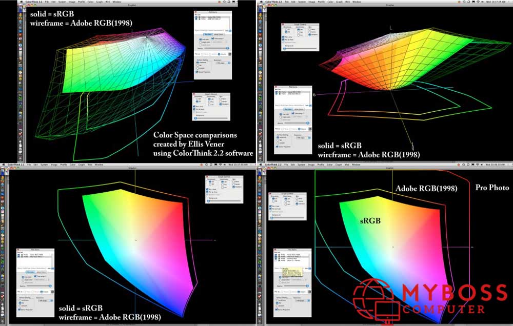 Màn hình đồ họa chuyên nghiệp nhất chính là những màn hình giá đắt nhất. Điều đó không có nghĩa cứ làm đồ họa là chúng ta phải mua màn hình thật là đắt. Hiện nay, chủ yếu màn hình đang được phân loại theo chuẩn màu là sRGB và Adobe RGB . Sự khác biệt giữa hai tiêu chuẩn này là phạm vi của màu sắc có thể được hiển thị khi dải màu Adobe RGB rộng hơn và chi tiết hơn.