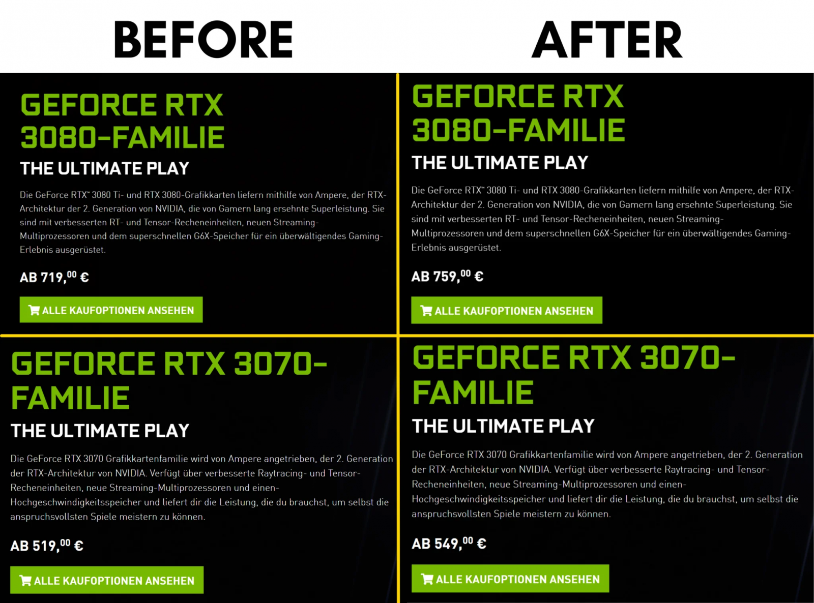 Giá của dòng card RTX 30x sau khi được điều chỉnh (Nguồn: NVIDIA Germany)