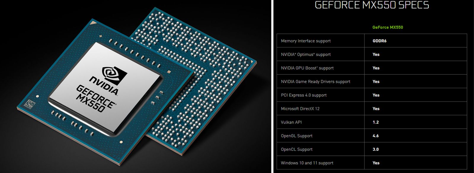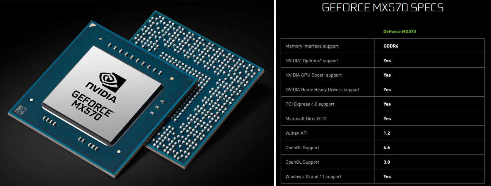 Đây sẽ là hai model chủ lục trọng dòng sản phẩm MX của NVIDIA trong thời gian tới. Tuy nhiên, công ty đã không công bố thông tin chi tiết về thông số kỹ thuật của cả hai sản phẩm này. Có vẻ như MX570 sẽ dựa trên SKU GPU Ampere hoàn toàn mới là GA107, trong khi MX550 sử dụng kiến trúc Turing TU117 cũ hơn. Bộ đôi này sở hữu “lõi CUDA tiết kiệm điện năng hơn, đồng thời hỗ trợ tốc độ bộ nhớ nhanh hơn so với các GPU MX trước đây”.