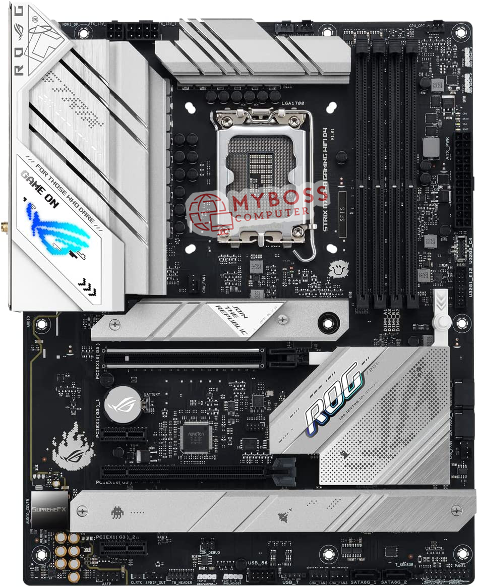 Đầu tiên, chúng ta có bo mạch chủ ASUS ROG STRIX B760-A Gaming WIFI DDR4 sở hữu kích thước ATX và dường như dàn VRM được thiết kế 16 pha với bố cục đầu nối nguồn 8 + 4 pin. Thiết bị sở hữu 1 khe cắm PCIe 5.0 x 16, PCIe 3.0 x 4 và PCIe 3.0 x 1.