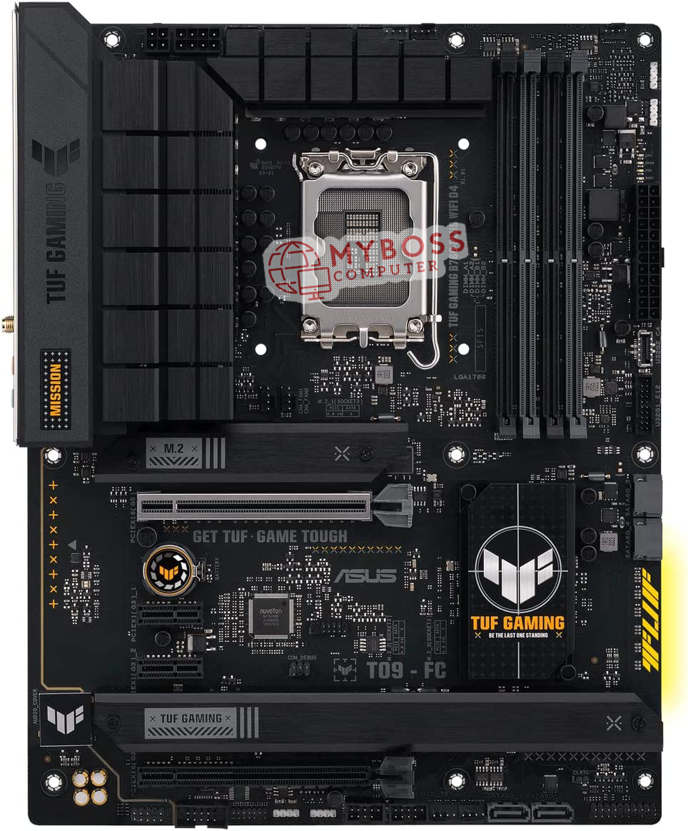 Bên cạnh những bo mạch chủ thuộc dòng ROG, ASUS còn mang đến 1 phiên bản Intel B760 thuộc dòng TUF Gaming mang tên B760-P PLUS WIFI DDR4. Sản phẩm sở hữu đầu nối nguồn cung cấp năng lượng tương tự với ASUS ROG STRIX B760-A nhưng mang đậm phong cách của dòng sản phẩm TUF với tông màu chủ đạo đen và vàng.