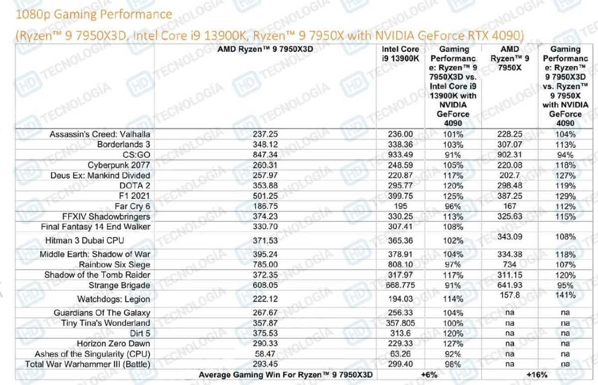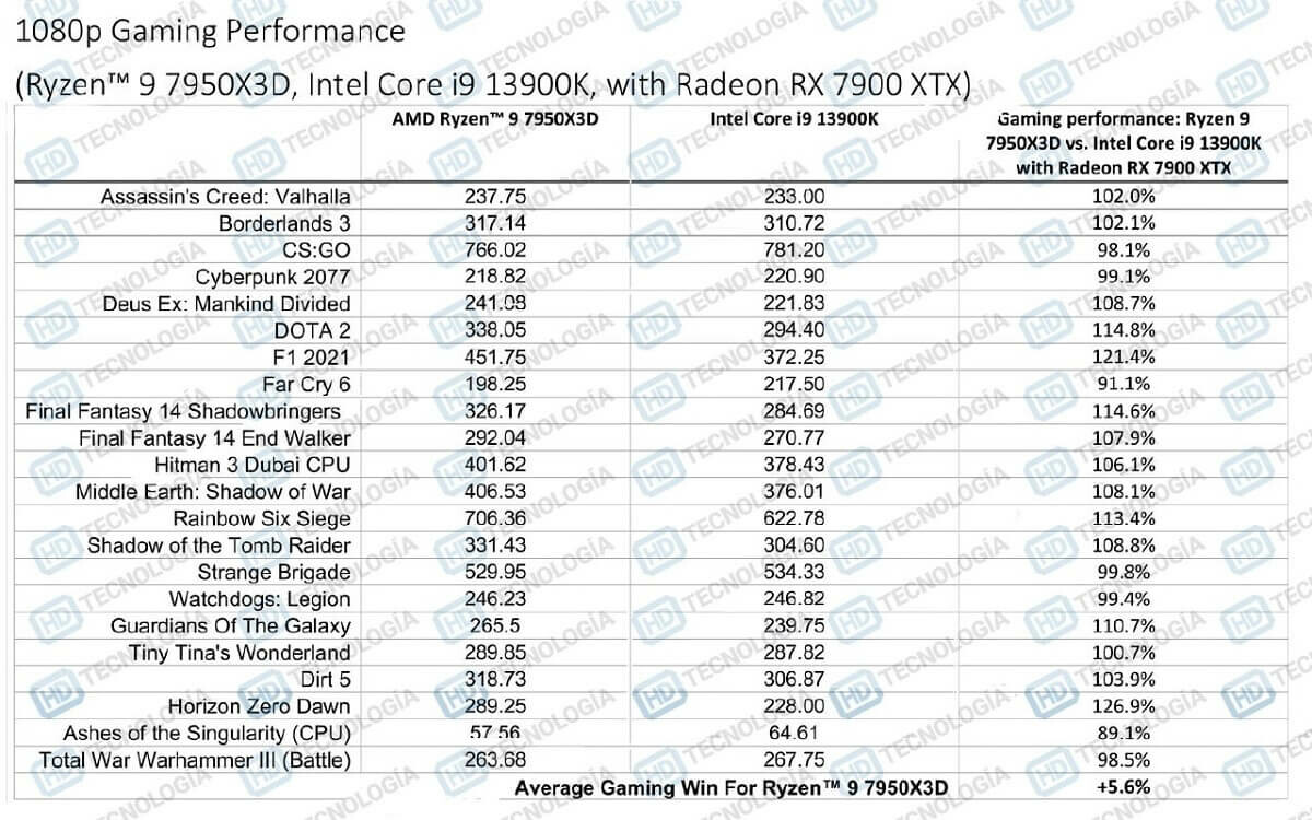 Mặc dù vậy, cũng cần phải nhìn nhận rằng Ryzen 9 7950X3D chỉ có mức TDP 120W thấp hơn nhiều so với Intel Core i9-13900K khi sở hữu TDP lên đến 250W. Ngoài ra, vi xử lý hàng đầu của Intel còn mang trong mình đến 24 nhân và 32 luồng nhưng vẫn bị đánh bại.