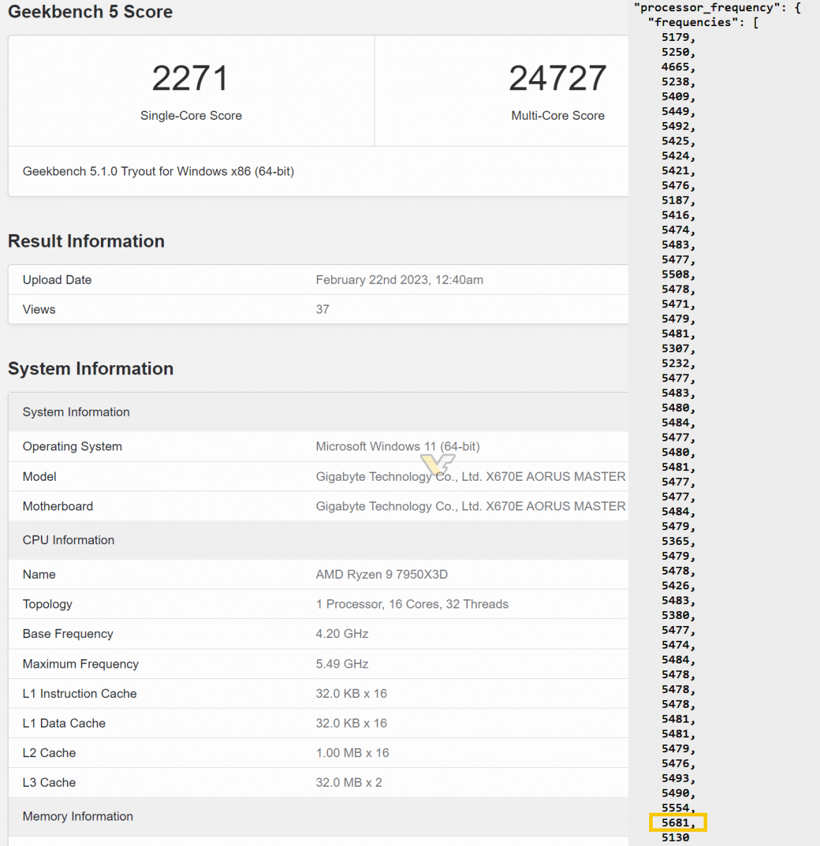 Trong thử nghiệm lần này, Ryzen 9 7950X3D đã được kết hợp với bo mạch chủ Gigabyte X670E AORUS Master và dung lượng RAM 32GB DDR5 . Ryzen 9 7950X3D dễ dàng đạt được xung nhịp tối đa lên đến 5.7GHz, rất ấn tượng đối với mức TDP chỉ 120W và sở hữu 16 nhân cùng bộ nhớ cache được thiết kế xếp chồng theo dạng 3D.