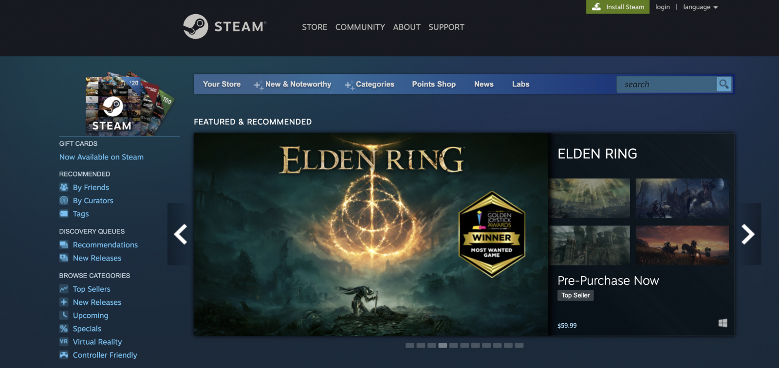 Trò chơi phổ biến nhất ở thời điểm hiện tại trên Steam vẫn đang là Elden Ring - dự án vừa giành danh hiệu trò chơi hay nhất năm 2022. Việc Elden Ring lần đầu tiên được giảm giá trên Steam dịp lễ vừa qua cũng đã thu hút thêm không nhỏ người dùng mới cho trò chơi và bản thân nền tảng của Valve.