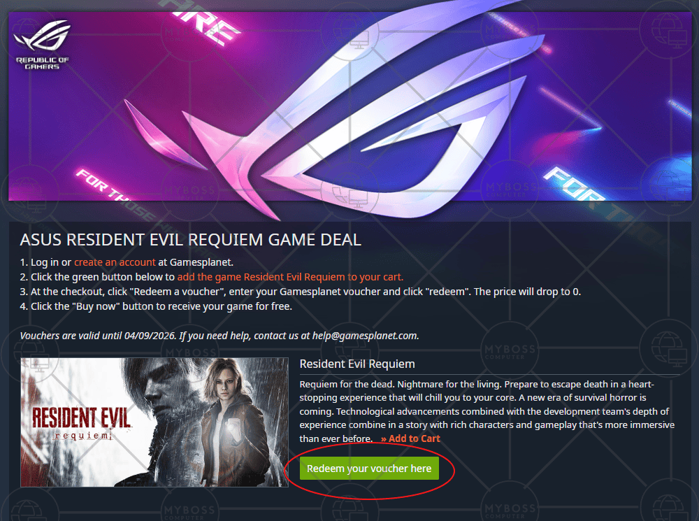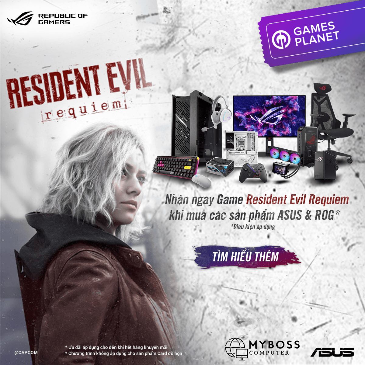 Khách hàng mua bất kì sản phẩm linh kiện ASUS hoặc ROG chỉ định tại MYBOSS Computer để nhận ngay code game Resident Evil Requiem trị giá 1,450,000đ.