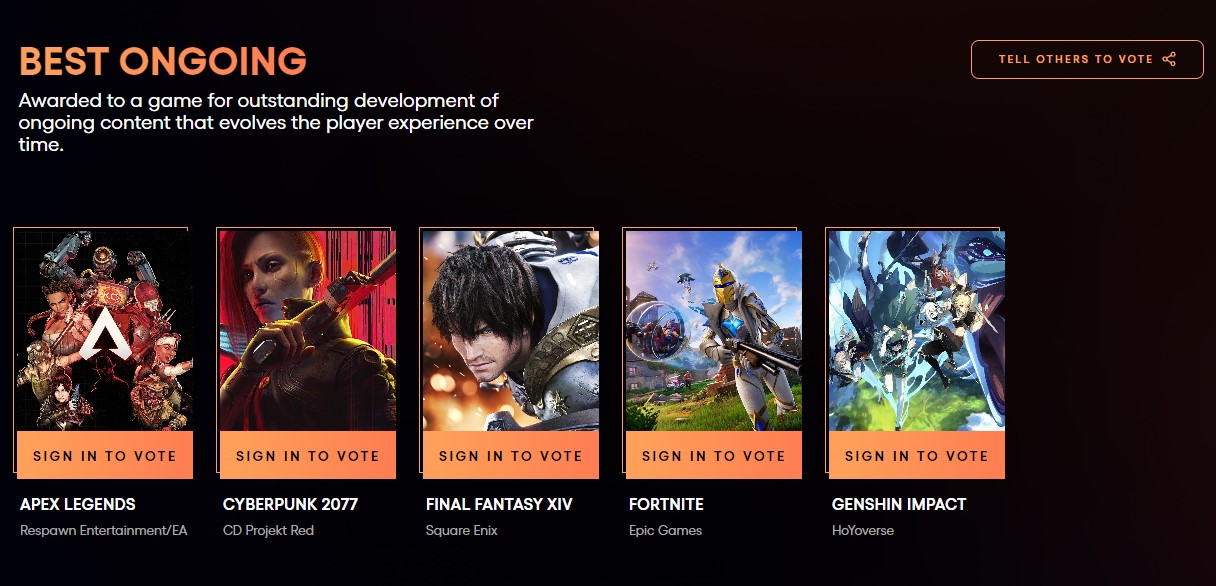 Anh em cũng có thể tự vote cho tựa game/ tuyển thủ mình yêu thích ngay tại đây .